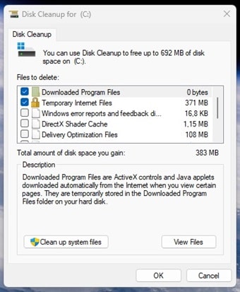 - Check off things like Temporary files, Recycle Bin, and System created Windows Error Reporting logs