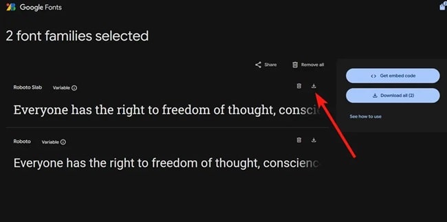 - On the right-hand side, hit that download icon. It’ll package the font in a