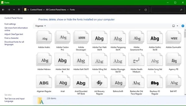 - This will take you to a page showing all the fonts currently installed on your system. It’s like a mini library of everything your computer can use.