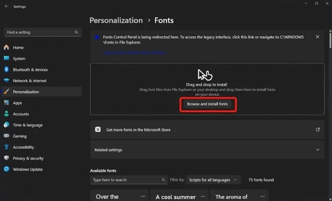 If you want to install fonts using Windows Settings—no worries, you can do that too. Microsoft has been slowly moving stuff away from the Control Panel, and fonts have followed that trend too.
