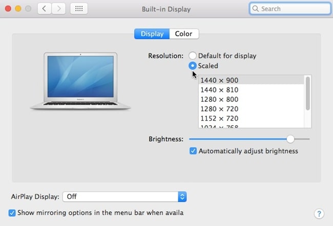 - Still in System Settings > Displays, click Scaled