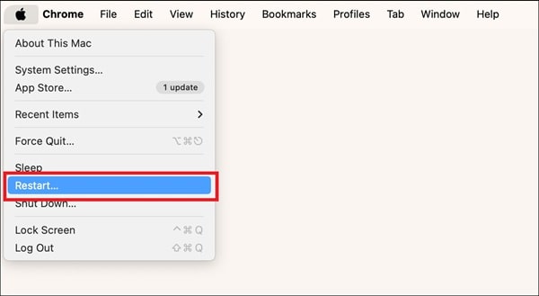 - Go to Apple menu, then choose Restart