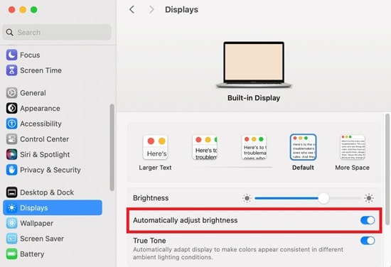 - Go to System Settings > Displays > Brightness