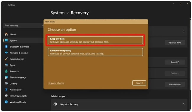 Method 3: Reset Windows 11 and Choose to Keep Your Files