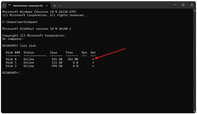 - Still in diskpart, let’s check if your disk is GPT or MBR:
